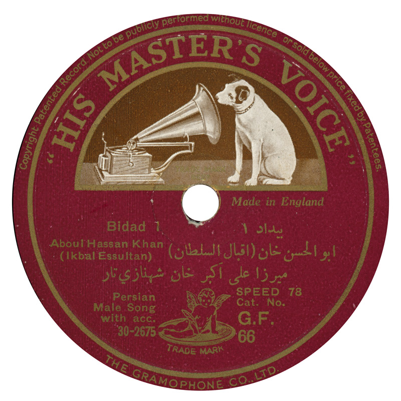 Abul Hasan Khan (aka Abolhasan Eqbal Azar) was one of the great Persian singers of the 78 era. He was an Azeri, born in 1871 (some say 1866) in the village of Alvand, outside of Qazvin in the northwest of Iran, not far from the borders of Azerbaijan, Armenia, Turkey and Iraq. As a child, he moved to Qazvin where he studied music with the famed Haji Mulla Karim. He performed in major cities around the country and in 1914 made his first record for the Monarch label. This recording, made with the newly invented electrical recording gear, was recorded in 1929 in Tehran by Frank Rennie and released the following year. Abul Hasan Khan was still performing when he died at the age of 100.